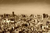 Urban landscape with dense buildings at central Tokyo area.