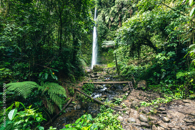 Cascada Hola Vida. Waterfall in Puyo. Tropical Green Rainforest in Amazon. Ecuador. South America.