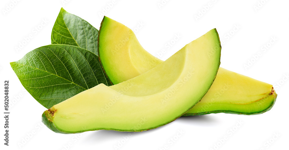 Avocado isolated on white background. Avocado fruit clipping path. Avocado macro studio photo