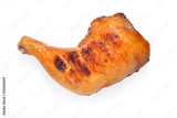 Grilled chicken thigh on white background.