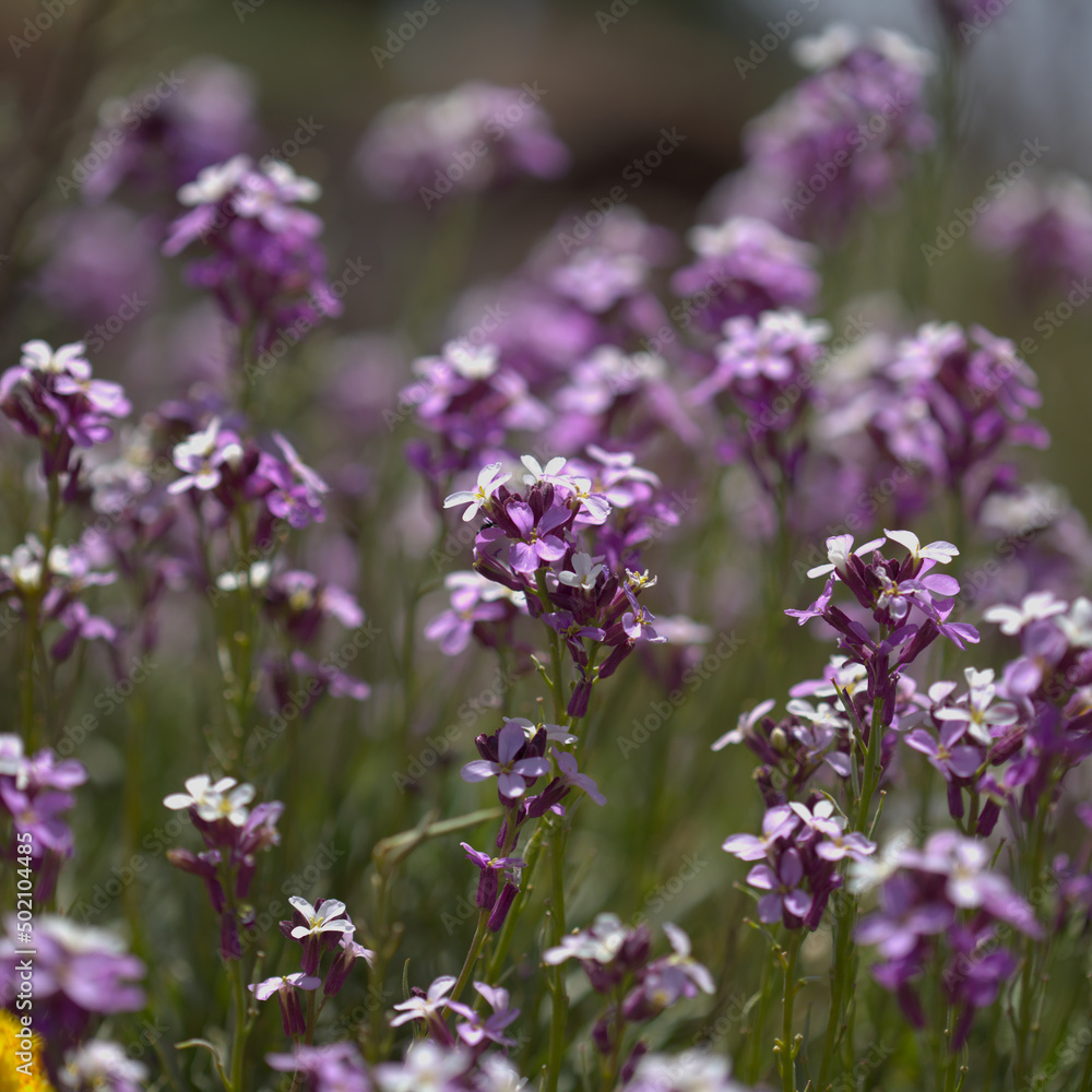 Flora of Gran Canaria - lilac flowers of crucifer plant Erysimum albescens, endemic to the island natural macro floral background