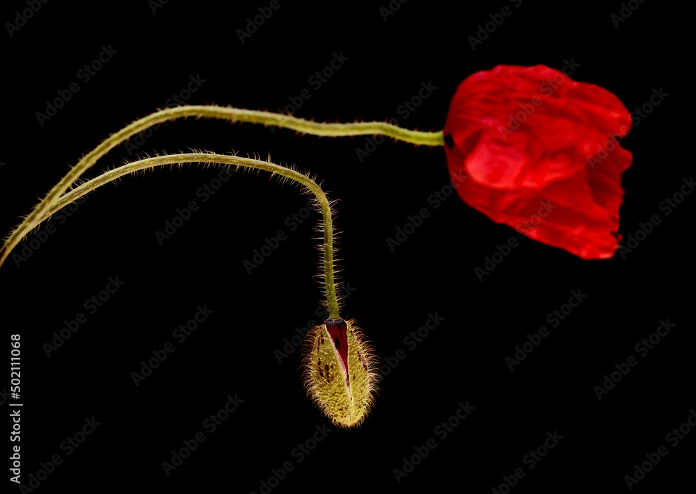 Flora of Gran Canaria - Papaver rhoeas, common poppy isolated on black background