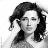 Face of the beautiful woman with curly brown hairs
