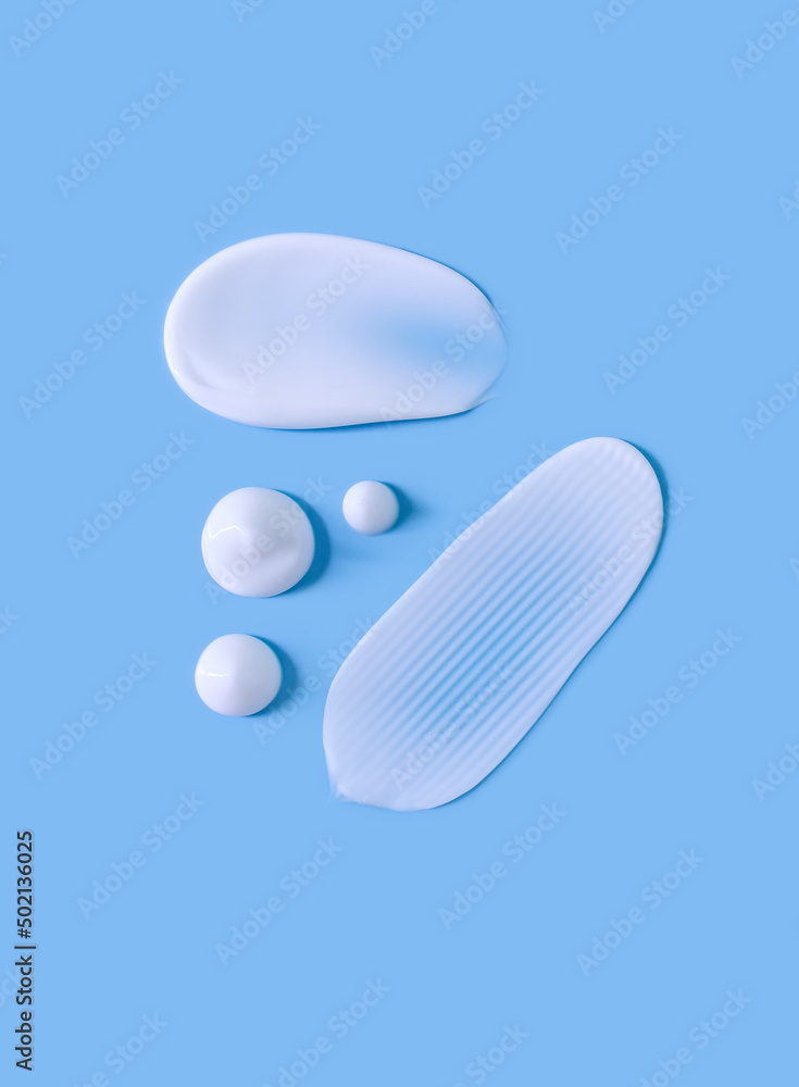 cosmetic smears cream texture on pastel blue background