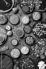 Variety of vegan, plant based protein food, legumes, lentils, beans