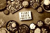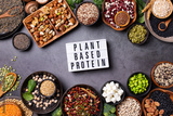 Variety of vegan, plant based protein food, legumes, lentils, beans