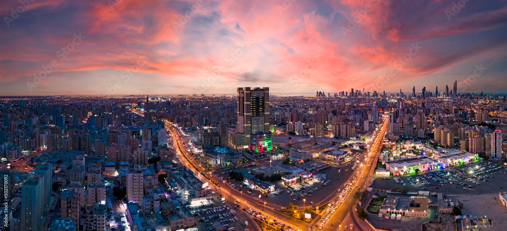 Beautiful Sunset Time Aerial Panorama Of Hawalli City Kuwait