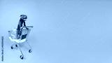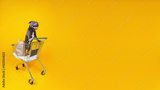 Pretty dog standing in shopping cart