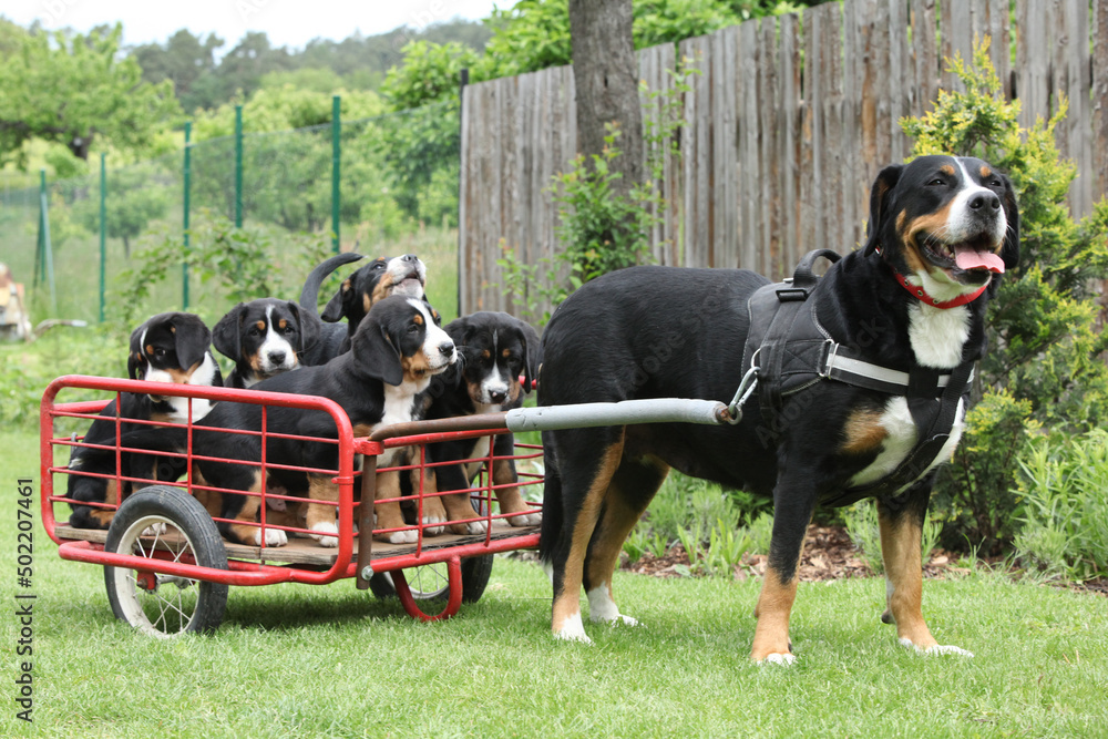 Bitch of Greater Swiss Mountain Dog with its puppies