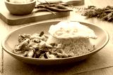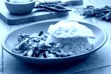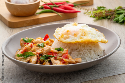 Rice with stir-fried sliced chicken and basil with topped fried egg,Thai food