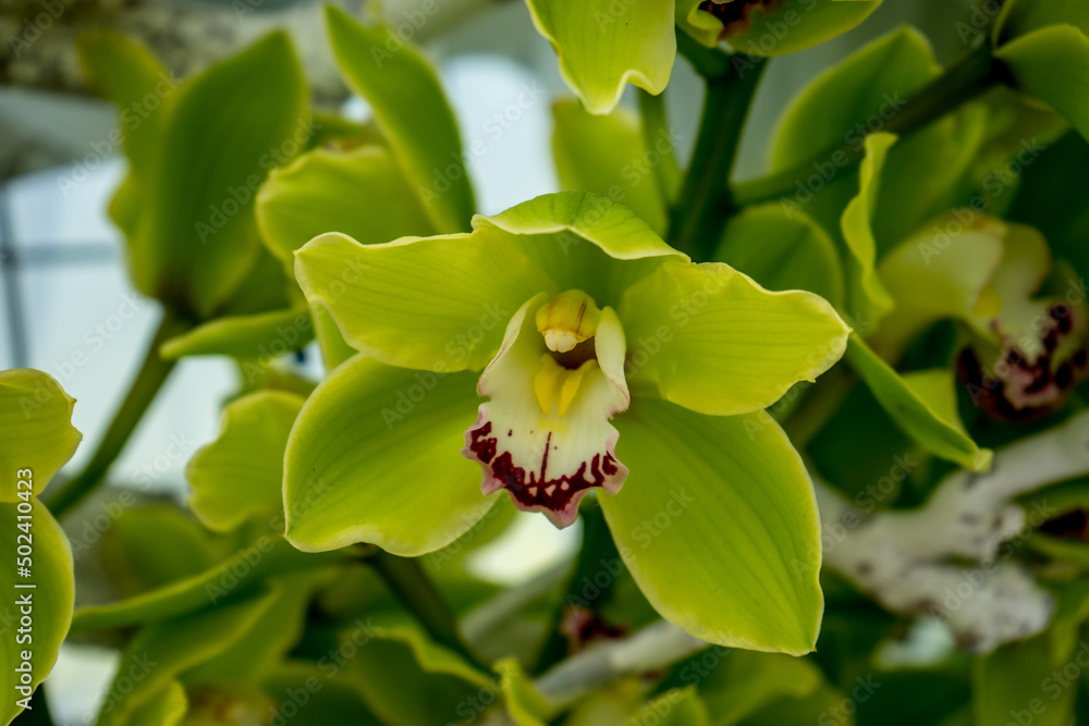 Teal orchids in the Garden of Europe. Keukenhof, Lisse, Netherlands