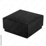 Square black closed cardboard box with a lid - side view. For design, branding, presentation or advertising. Isolated on white background