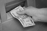 Indian rupees withdrawn from the ATM, Financial and economic concept related to inflation and rising cost of living, Declining value of money