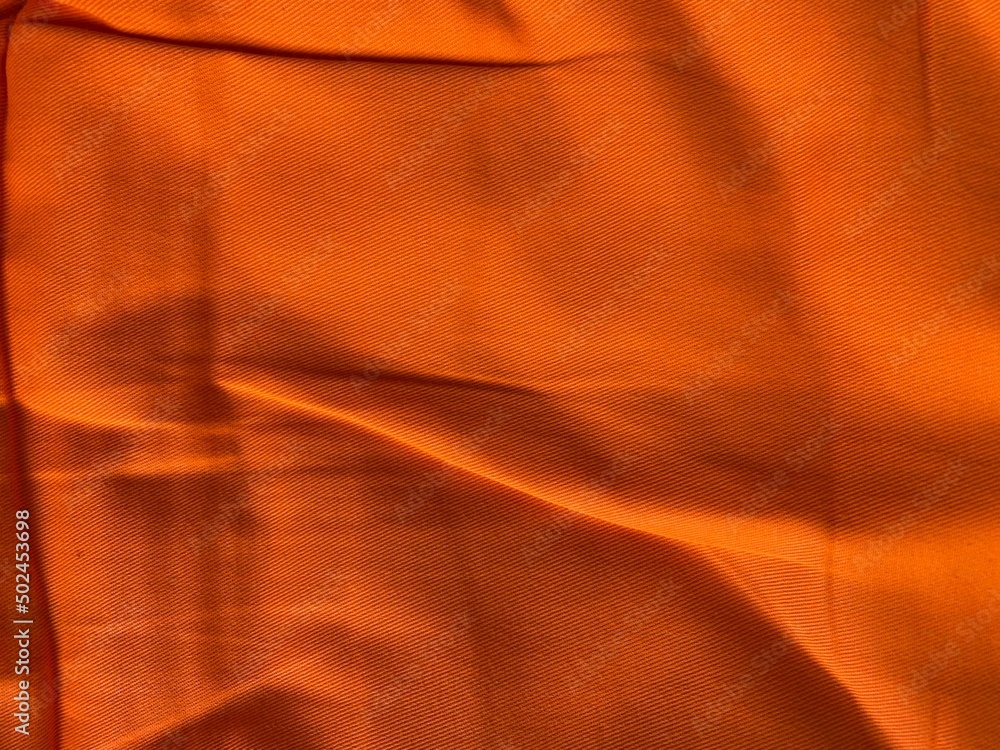 Orange cloth background. Old dark orange color fabric. Fashion design clothes texture