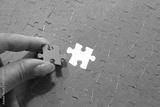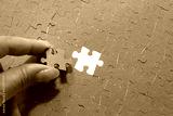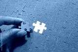 hand puts the last element of the puzzle, finding a suitable solution, completing the project