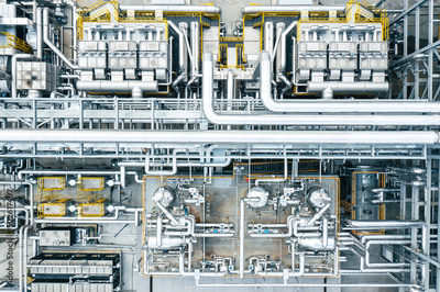 Factory Oil and Gas Refinery. Modern Fuel Energy Plant. Aerial Top View Industrial Site. Industrial Background.