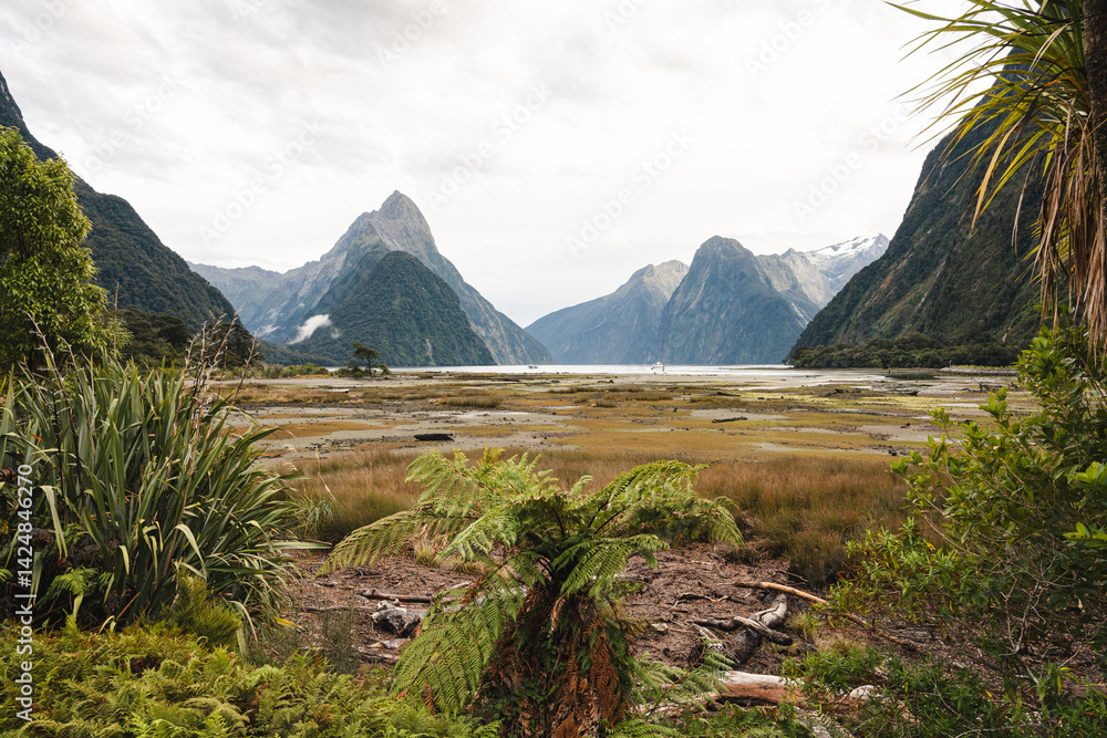 Sunny tropical Caribbean beach with palm trees and turquoise water, caribbean island vacation, hot summer day