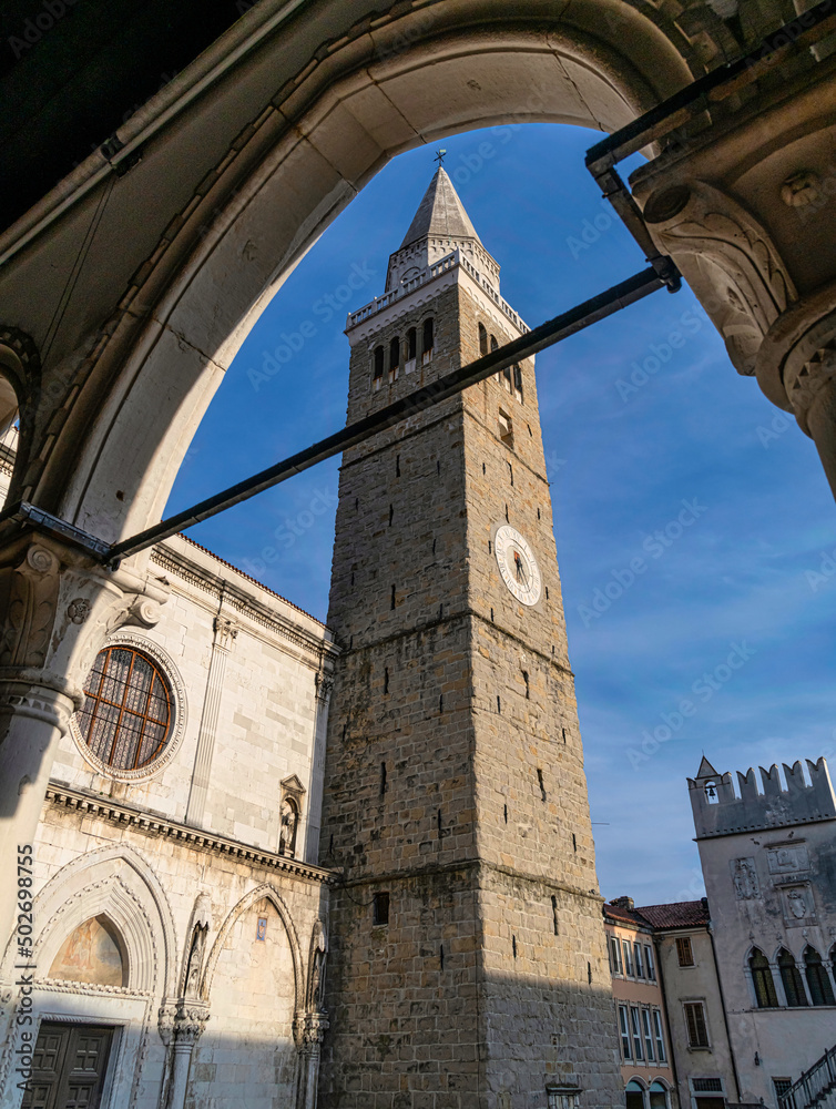City Tower and Cathedral, Buildings on the main Tito square in downtown. KOPER, SLOVENIA