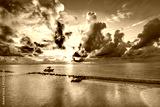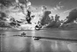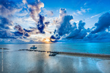 Colorful Sunset Cloudscape Boat Breakwater Blue Water Moorea Tahiti