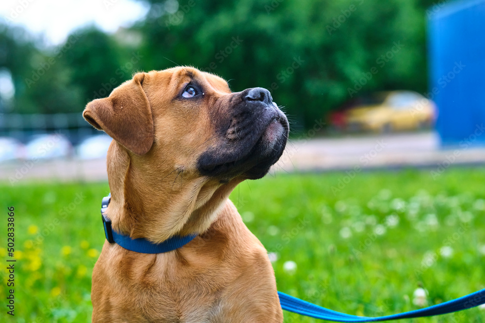 Closeup portrait of dog breed South African Boerboel South African Mastiff - rare breed dogs. color