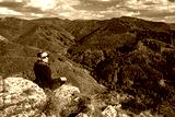 Happy girl with smile relaxing on top of the hill in beautiful nature