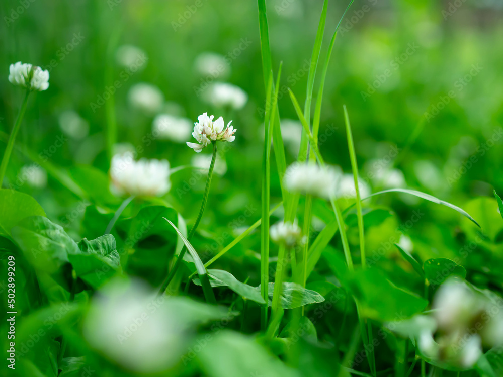 野原に咲くシロツメクサの花