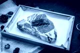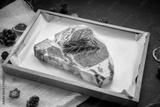 Raw T-bone steak beef with rosemary on wooden plate, T-bone steak beef (Sliced) on black wooden background.