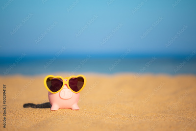 Piggybank on the beach in summer