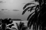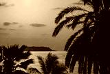 Tropical sunrise on the beach – Silhouettes of coconut palm trees, view on Gorée Island, Dakar, Senegal