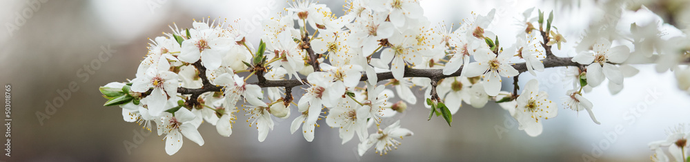 Cherry blossoms in full bloom. Beautiful background. Copy space. Shallow depth of field.