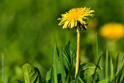 Field dandelion growing in the meadow