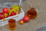 Rote Äpfel und frischem Apfelsaft im Krug und Glas.