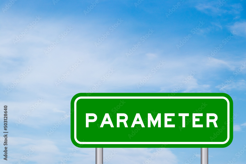Green color transportation sign with word parameter on blue sky with white cloud background