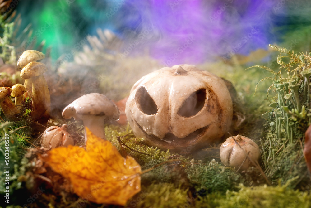 Jack-o-lantern in Fairy tale ambiance magical autumn forest