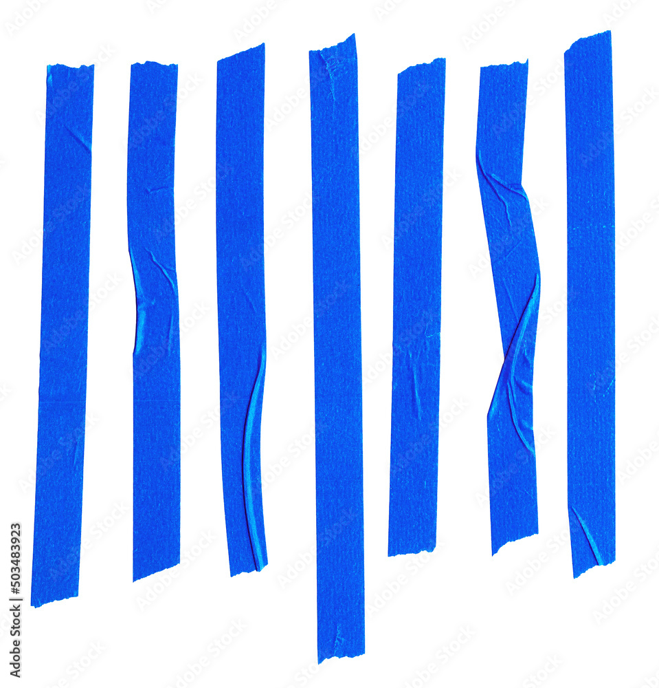 cool set of blue paper stickers or strips with teared edges, crumpled paper stripees on white background.