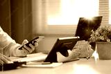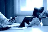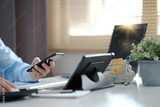 Close Up on Hands of a man Specialist Working on Laptop Computer at Cozy Home Living Room while Sitting at a Table. Freelancer man Chatting Over the Internet on Social Networks