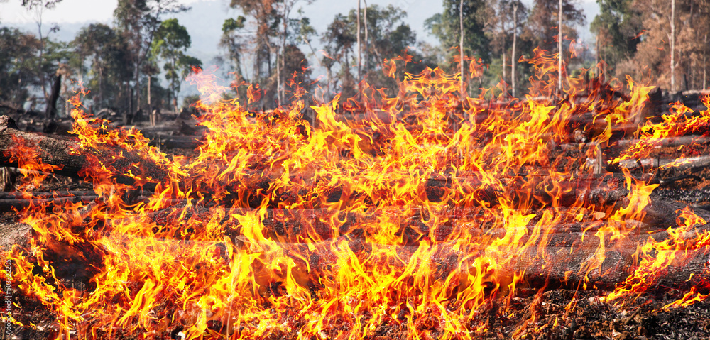 Wood cutting, burning wood, destroying the environment.Area of illegal deforestation of vegetation native to the LAOS forest,ASIA.Black peaks and burns Caused by the destruction of human.