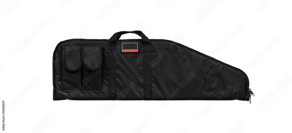 Soft black weapon case with extra pockets. Bag for storing and transporting weapons. Isolate on a white back.