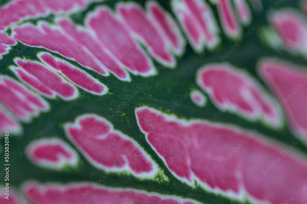 Selective focus close up Caladium bicolor leaf background.Called Heart of Jesus plant.( Caladium bicolor (Aiton) Vent)