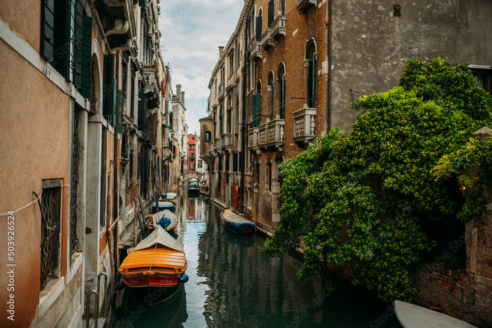 Traditional narrow canal street with old houses in Venice, Italy. Italy beauty, one of canal streets in Venice, Venezia