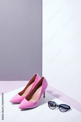 Elegant classic pink shoes. High heels.