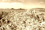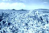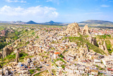 Aerial drone view of Uchisar Castle in Cappadocia, Turkey