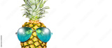 Creative pineapple with sunglasses on summer background.