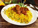 Gulasch auf Curryreis mit Gemüse