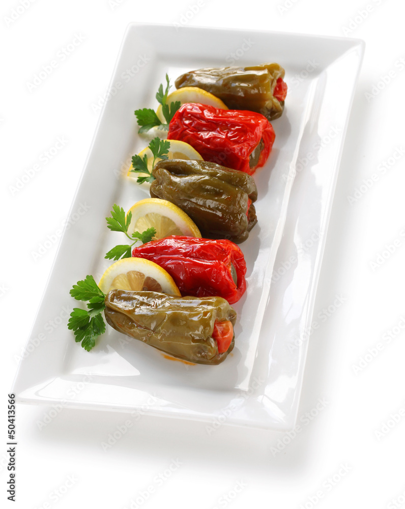 biber dolmasi, turkish food, stuffed peppers with rice