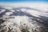 Aerial view of snowy mountains with clouds