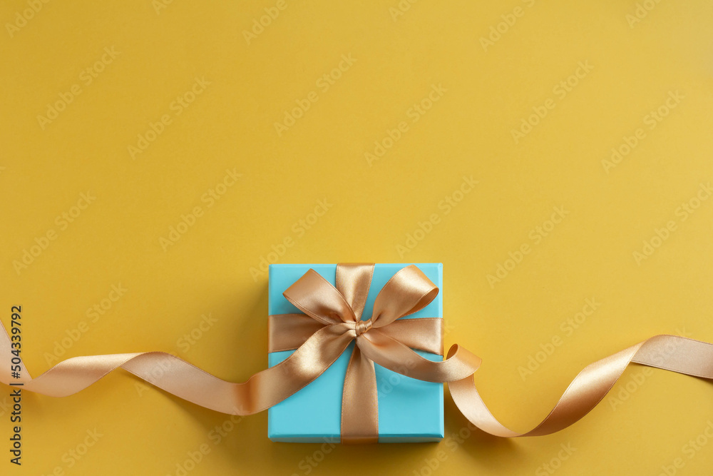 黄色い無地の背景と青いプレゼントのさわやかなプレゼントのイメージ 父の日