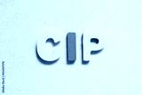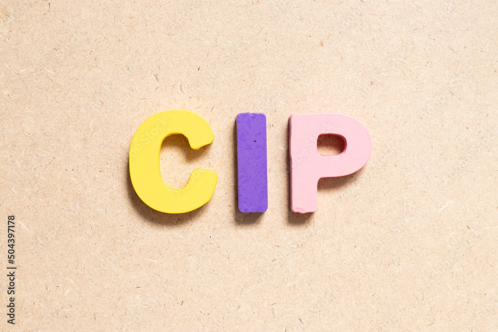 Color alphabet letter in word CIP (Abbreviation of Carriage and Insurance Paid to, Continual improvement process or Clean-in-place) on wood background