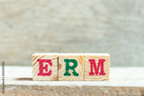Alphabet letter block in word ERM (Abbreviation of Enterprise risk management) on wood background