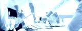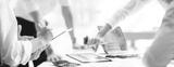 Cropped shot of diverse coworkers working together in boardroom, brainstorming, discussing and analyzing business strategy.